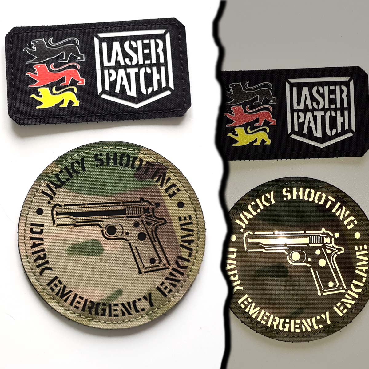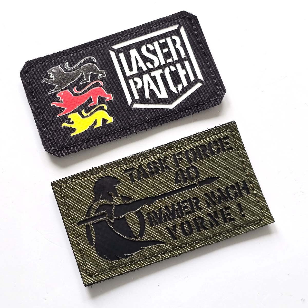 Die Laser-Cut-Technologie bietet entscheidende Vorteile im taktischen Einsatz. Während gestickte Patches durch aufstehende Fäden und Materialaufbau anfällig für Verschleiß sind, bleiben Laser-Cut Patches vollständig flach und widerstandsfähig.